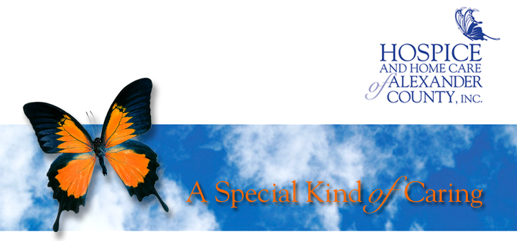 FEBRUARY 5, 2017 - SWEETHEART DINNER and SILENT AUCTION to benefit Hospice & Home Care of Alexander County - Click for details and to download a flyer. ASK FOR ALEXANDER • When it matters most...ASK for Alexander! Learn more... NEW VIDEO SHOWCASES HOSPICE OF ALEXANDER • Hospice & Home Care of Alexander unveils new video that highlights the quality end of life care and services available to Alexander residents in the comfort of their own home. Click here to see video now! |